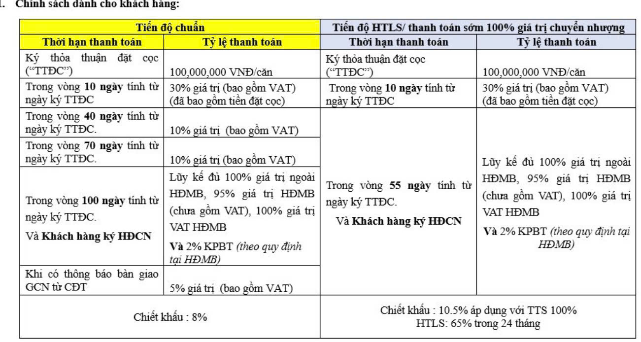 Chiết khấu ngay 8% nếu không vay ngân hàng mà thanh toán theo tiến độ